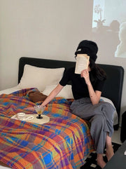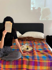 Rainbow Plaid Throw Blanket - Ultra Soft Premium Teddy Bear Fleece
