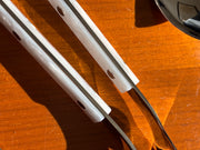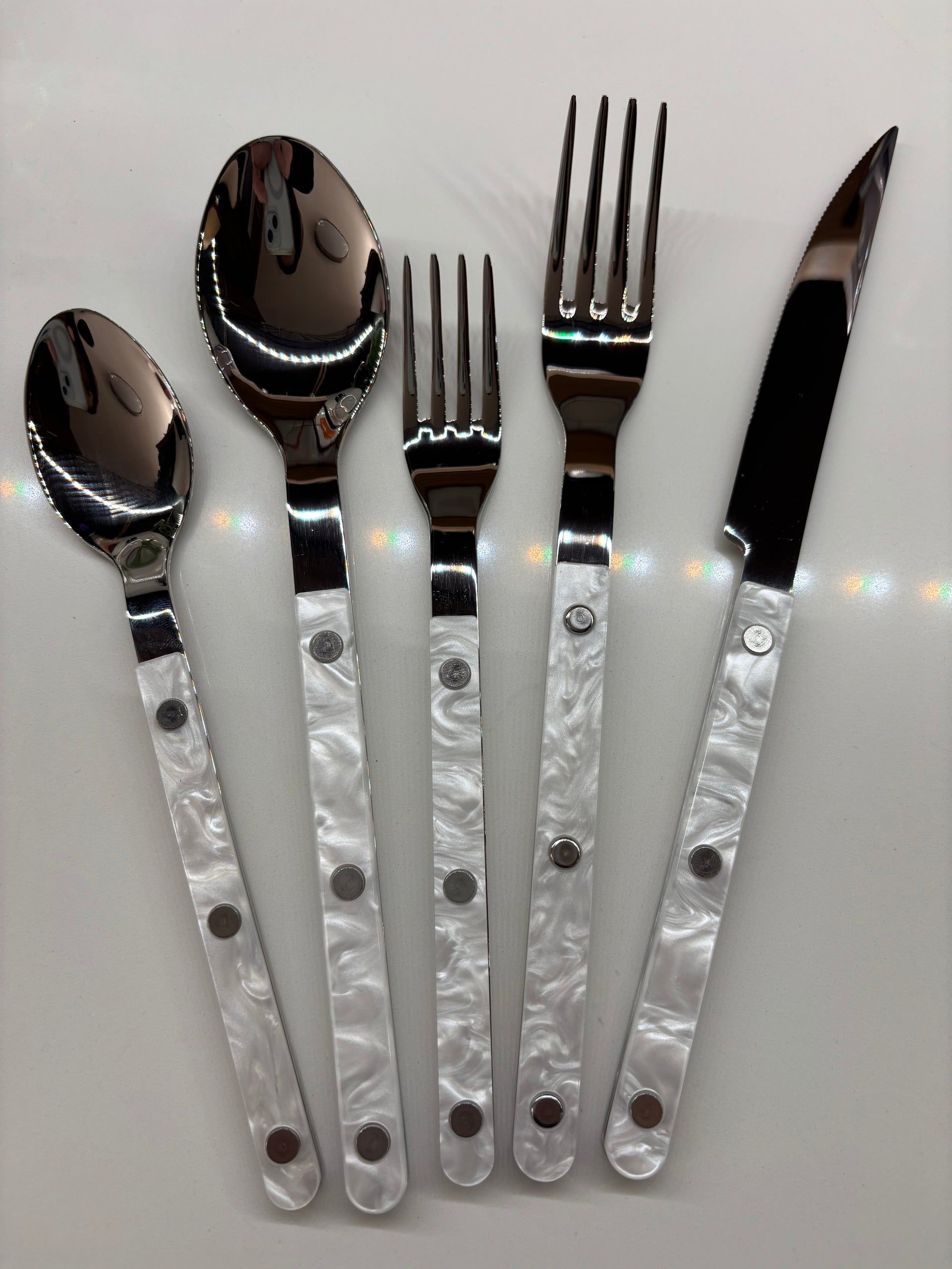 New colorways for Fall 2025! Now choose from Glacier, Sand Dune, or Drifting Cloud in our classic bistro-style flatware that can mix and match with any Marguerite set.
