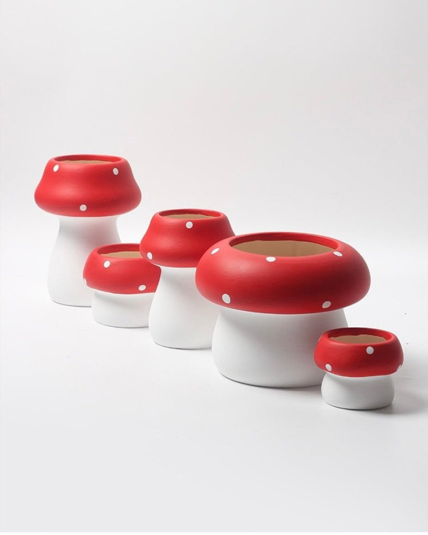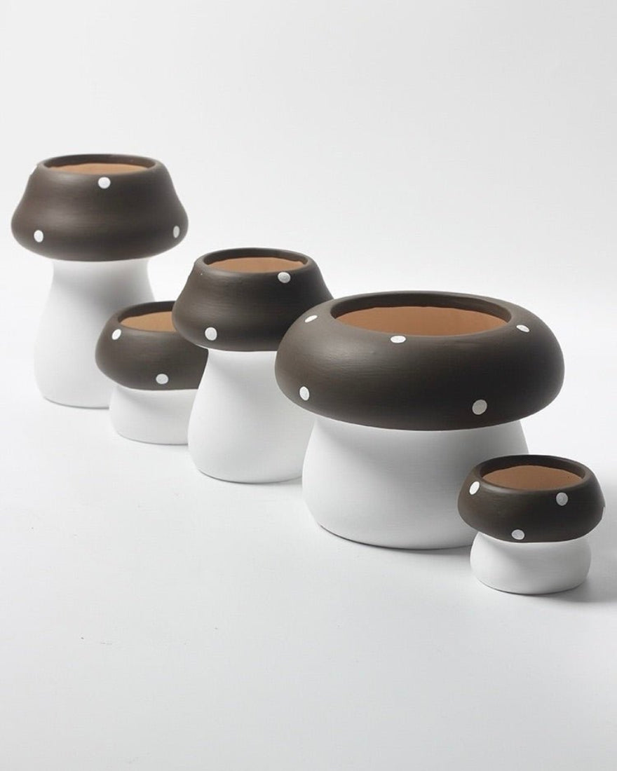 Grow some cute mushrooms in your backyard, front porch or patios! Featuring cute whimsical mushrooms, these handmade mushroom plant pots are crafted by skilled artisans to dazzle your neighbours or guests. Made from high-quality pottery material, these pottery pots could be used indoor to grow & showcase succulent plants while also as accent pieces to add a playful touch to your space