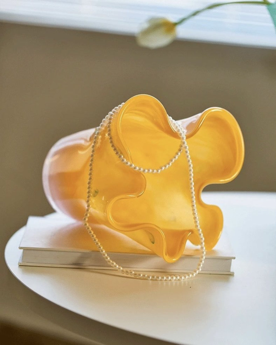 Inspired by the beauty of natural world, these handblown cute whimsical  vases feature dynamic wavy rims and bold vibrant colors.