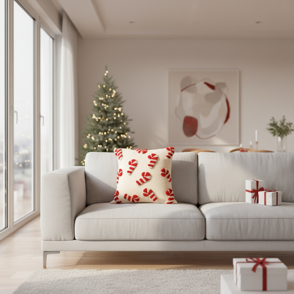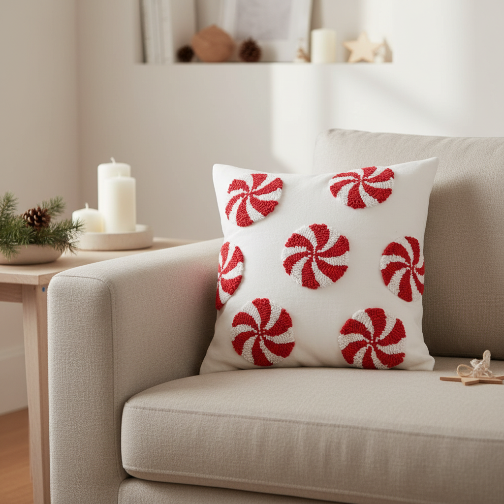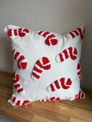 Christmas Tufted Decorative Throw Pillow Cover - 18"x18" - Candy Canes & Peppermints